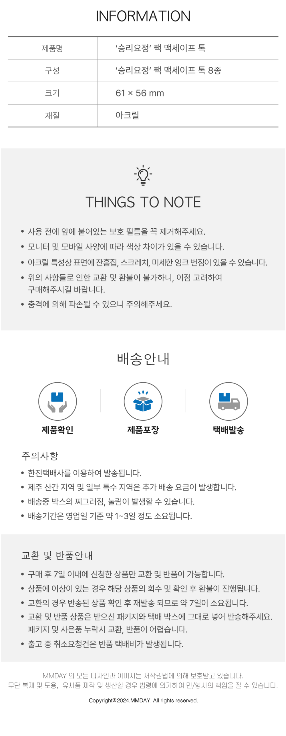 제작 및 포장, 배송 중 발생 할 수 있는 작은 상처나 오염을 막기 위해